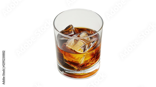 whiskey, whiskey, glasses, ice, rock, alcohol, drink, beverage, brown, liqueur, bourbon, scotch, rum, distilled, spirit, refreshment, bar, cocktail, party, celebration, luxury, amber, gold, cold, chilled, neat, relax, enjoy, elegant, single, studio, shot, cut, out, no, people, vertical, close, up, cube, alcoholic, background, isolated, white, transparent