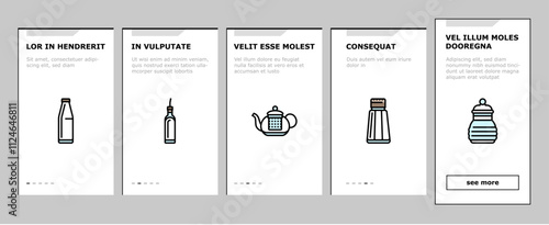 glass packaging bottle product onboarding mobile vector food milk, pack box, jar cup, canister vial, jug, spray, lotion, salt glass packaging bottle product illustrations