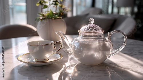 exquisite, elegant, afternoon tea, atmosphere, transparent, texture, ceramic, plant, home, scene, teapot, teacup, glasses, gold, decoration
