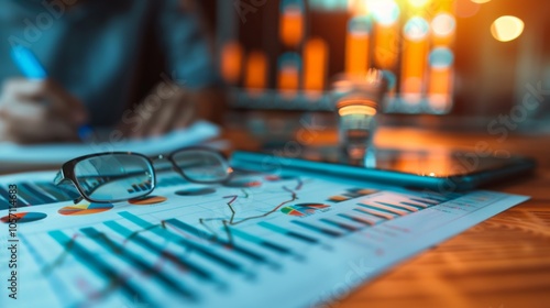 goggles, chart, desk, glowing, datum, background, financial, analysis, business, technology, paperwork, document, finance, economy, research, work, stock exchange, investment, office, workspace, productivity, information, modern, tech, studying, professional