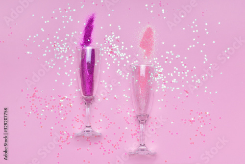 alcohol, alcoholic, background, bar, beverage, celebrate, champaign, cold, colours, composition, decor, delicious, different, drink, fizzy, flat, glasses, goggles, holiday, lay, nobody, object, party, pink, purple, refreshment, shine, star, sweet, tasty, top, view, wine