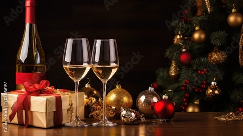Glasses of champagne or wine glass. Merry christmas and happy new year concept