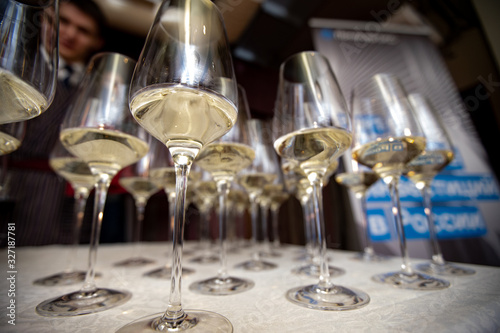 glasses, wine, table, eatery, drink, champaign, goggles, alcohol, dinner, celebration, wine glass, empty, party, white, wedding, crystal, food, reception, nobody, plate, banquet, napkin, lunch, decoration, luxury