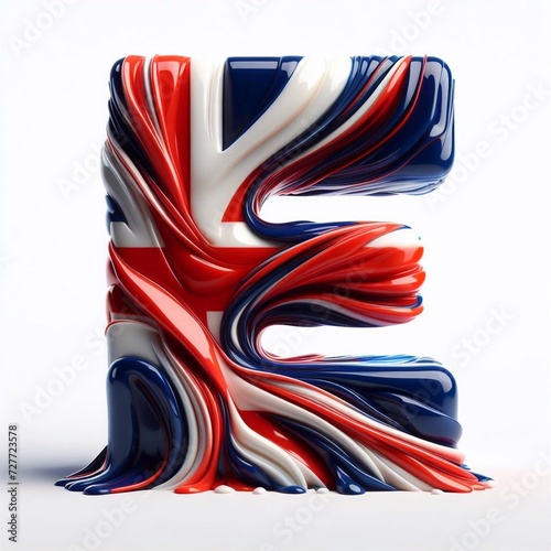 Glasss letter E in color of United Kingdom flag. AI generated illustration
