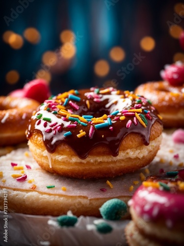 Glazed doughnut with topping in studio lighting and background, cinematic donut dessert photography