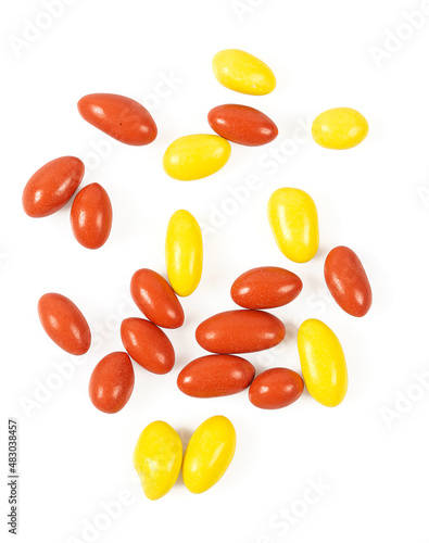 white background, isolated, red, yellow, almond, crunchy, nut, glazed, almond, iced, icing, treat, dried, covered, candied, coloured, texture, sugar, sweet, tasty, background, dessert, food, group, white, confectionery, snack, candy, delicious, chocolate, shell, closeup, cocoa, peanut, glaze, nut, coated, colourful, colours, holiday, pink, eat, bright, dripped