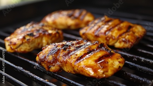 Glazed Salmon Filets Grilling on a Black Grill