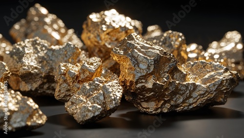 Gleaming Gold Nuggets A Close Up View of Precious Raw Mineral Wealth and Natural Treasure