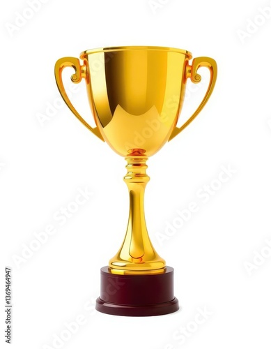 Gleaming golden trophy cup, perfectly isolated on pure white background, golden trophy cup, symbol, elegant