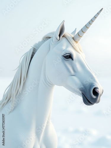 gleaming unicorn head stands alone stark background evoking ethereal minimalist art