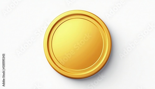 Glistening Gold Coin on Perfect White Background. A gold coin on a white background.