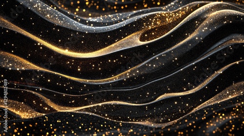 Glistening waves undulate gracefully across a dark canvas, illuminated by radiant specks of golden stardust