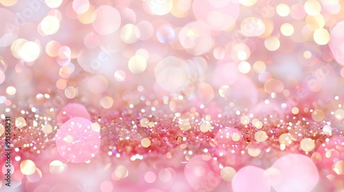 Glittering backdrop, pink and gold bokeh lights, watercolor style