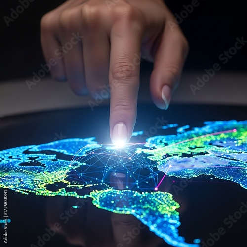 finger, digital display, technology, connectivity, innovation, world map, communication, networking, information technology, visualisation, human finger, light effect, artificial intelligence, touch screen, futuristic, globalisation, interface, touch, global communication
