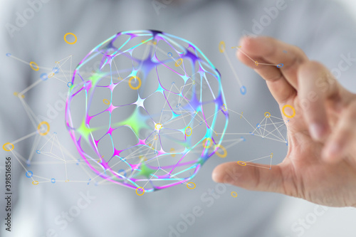 Global network. Blockchain. 3D illustration. Neural networks and artificial intelligence. Abstract