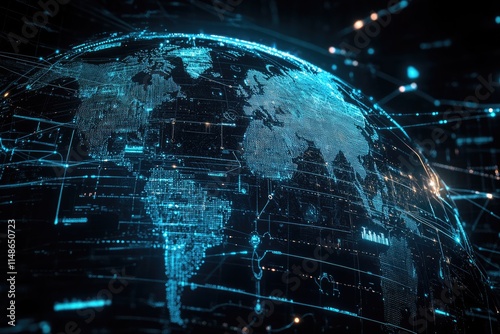 global, network, digital, earth, map, datum, visualisation, technology, cyberspace, connection, communication, information, system, computer, science, futuristic, abstract, design, graphic, innovation, progress, development, growth, future, modern, connectivity, cyber, space, line, point, light, blue, dark, background, globe, earth, matrix, grid, pattern, structure, texture, element