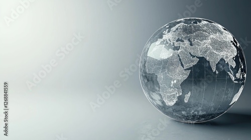 Global network sphere; modern geographic map; neutral background; presentation graphic