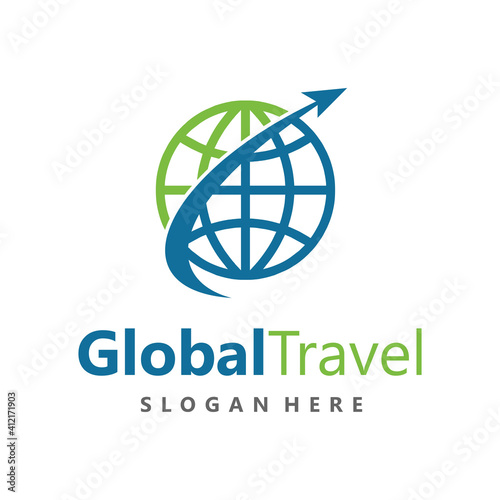 Global travel logo design vector template