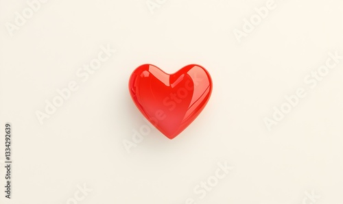 Glossy Red Heart Shape Symbolizing Love and Affection on Light Background