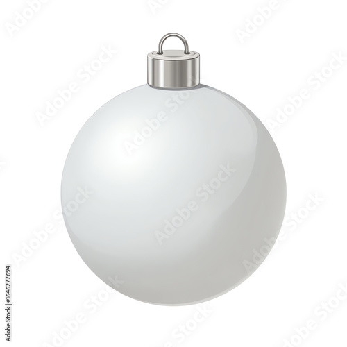 Glossy white glass bauble ornament with chrome cap, isolated on transparent background