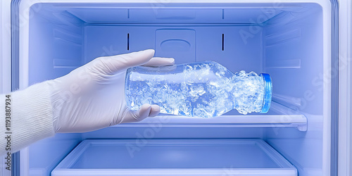 refrigerator, ice, water, bottle, cold, chilled, refreshing, beverage, drink, deep freezer, household, domestic, hygiene, cleanliness, safety, preservation, storage, cooling, temperature, container, transparent, clear, glacé, cube, frosty, winter, health, hydratation, purity, clean, fresh, liquid, cool, refreshment, dietary, healthy, thirst, quenching, invigorating, invigorate, revitalise, energizing, energise, cold drink, ice cold