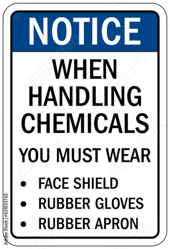 Gloves sign and labels when handling chemicals you must wear face shield, rubber gloves and rubber apron
