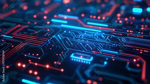 Glowing Abstract Circuit Board Design with Copy Space for Tech-Inspired Concept