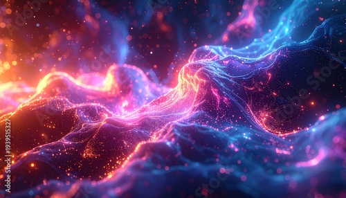 abstract, light, glow, energy, wave, cosmic, space, nebula, galaxy, particle, dust, fire, orange, blue, purple, high-coloured, dynamic, fluid, motion, texture, futuristic, modern, digital, render, illustration, art, design, visual, concept, background, wallpaper, creative, bright, sparkle, shimmer, flow, stream, curve, swirl, shape, formation, depth, dimension, imagination, surreal, dreamy, beautiful, hallucinogen