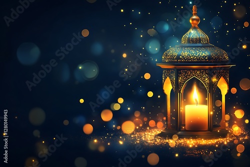 Glowing Arabic Lantern with a Candle Burning Brightly in the Night.