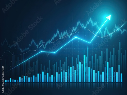 stock, market, financial, growth, upward, trend, arrow, chart, blue, graph, datum, performance, business, success, investment, trading, economic, profit, gain, positive, progress, visualisation, digital, abstract, glowing, neon, bull, analysis
