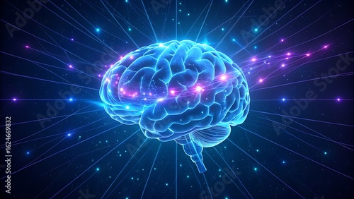 brain, human, mind, intelligence, consciousness, neural, network, nerve cell, activity, brainstorming, cognition, learning, memory, science, technology, futuristic, digital, cyber, ai, artificial, biotechnology, medicals, health, neurology, psychology, abstract, glowing, blue, purple