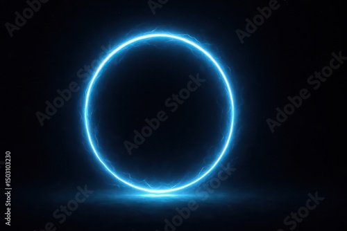 Glowing blue circle emanates energy in a dark, mysterious setting, evoking a sense of wonder and exploration