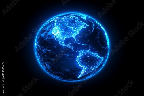 earth, globe, blue light, city, illumination, night, continent, representation, darkness, geography, planet, world map, population, urban area, visual, technology, science, environment, night view, astronomy, light, global, travel, journey, solar system, interconnected, energy, topography, cosmos, ecological, modern, design, nature, civilisation, exploration, beauty