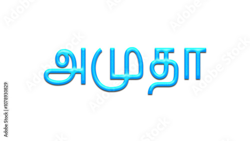 Glowing blue effect of Tamil name Amutha in Tamil font.