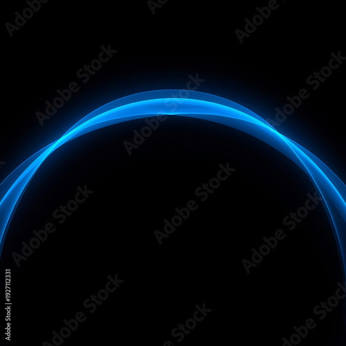 Glowing blue neon arc on black background digital art