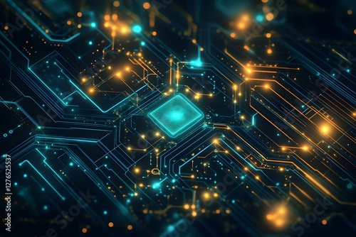 circuit board, technology, abstract, digital, futuristic, glowing, neon, electric, network, connection, line, pattern, background, texture, modern, design, innovation, science, datum, computer, electronic, chips, processor, motherboard, high technology, artificial intelligence, ai, cyberspace, communication, global, energy, power, light, bright, blue, orange, dark, illustration, graphic, wallpaper, screensaver, website, banner, presentation