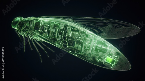 glowing, circuit, insect, digital, era, body, wing, technology, aesthetic, futuristic, intersection, nature, glow, modern, art, science fiction, fusion, innovation, creativity, abstract, design, form, imagination, cyber, green, electronic, advanced, intelligence, artificial, evolution, fantasy, bright, component, microchip, detailed, seamless