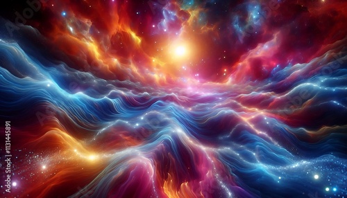 glowing cosmic waves rippling gracefully through vibrant colorful nebula, generative ai