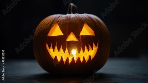Glowing Creepy Jack-O-Lantern on White Background - Halloween Spooky Decoration with Light Inside for Festive Atmosphere