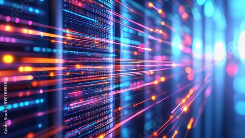 datum, digital, technology, server, rack, glowing, line, network, information, processing, storage, abstraction, energy, speed, visualisation, vibrant, futuristic, neon, computing, transfer, ai, broadband, connectivity, light, signal, innovation, design, architecture, cyber, matrix, colourful, bright