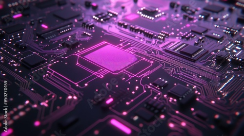 Glowing digital circuit board with cyber effects
