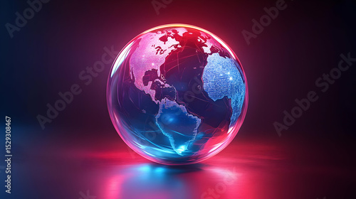 globe, earth, digital, technology, network, connection, global, earth, communication, datum, cyberspace, future, innovation, science, abstract, glowing, pink, blue, light, dark, background, sphere, line, point, three-dimensional, rendering, modern, design, graphic, illustration, concept, energy, power, virtual, reality, visualisation, geometric, texture, space