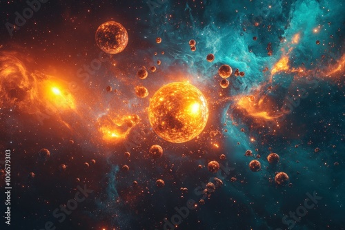 cosmic, glowing, illustration, digital, space, star, planet, nebula, colourful, vibrant, surreal, universe, celestial, light, atmosphere, depth, art, background, fantasy, exploration, scene, landscape, design, energy, bubble, movement, galaxy, radiant, aglow, shine, visual, beauty, phenomena, dramatic, mesmerizing, exciting, high-coloured, natural, formation, stellar, bright, aethereal, depiction, shadow, contrast, creativity, representation