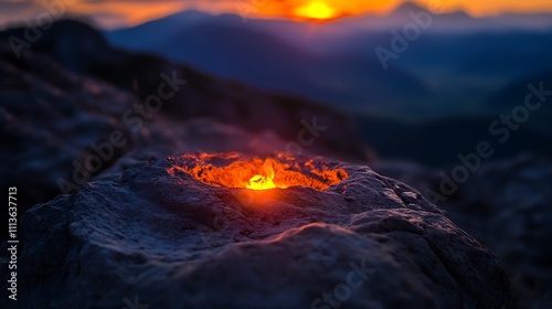 Glowing Embers Nestled In Mountain Rock At Sunset