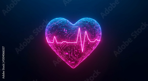 Glowing Heart Shape with Circuit Design and Heartbeat Line Illustration