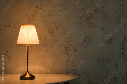 Glowing lamp on table in evening