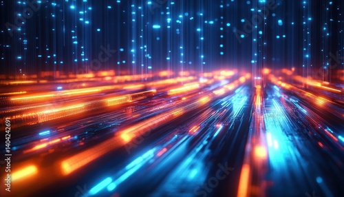 glowing, led, cable, fiber, optic, network, digital, artwork, futuristic, vibrant, light, orange, blue, composition, dynamic, linear, depth, motion, intense, neon, high technology, atmosphere, communication, computer, science, electricity, luminescence, sparkling, cyberspace, technology, speed, system, transportation, web, business, fast, connect, datum, background, light, wire, line