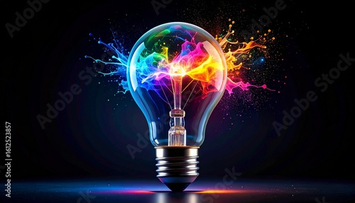 Glowing light bulb on dark background symbolizing bright idea and innovation