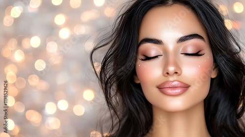 Glowing makeup application studio setting beauty portrait soft focus radiant skin concept for modern aesthetics
