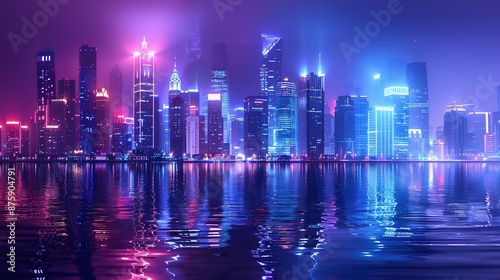 abstract, city, skyline, neon, light, reflections, water, urban, glowing, colours, vibrant, downtown, architecture, modern, night, illuminated, futuristic, city landscape, building, bright, electric, energy, nightlife, night time, shimmering, digital, art, landscape